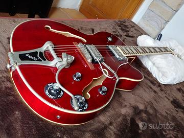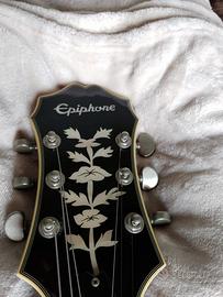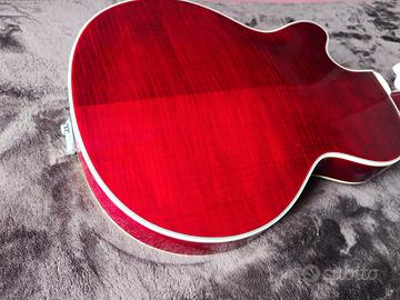 Comprata solo per estetica e mai usata, tenuta appesa per arredo in perfette condizioni con ancora le corde originali. Chitarra semiacustica elettrificata Epiphone Emperor Swingster colorazione red wine abete fiammato.