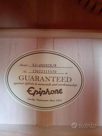Vendo chitarra acustica elettrificata Epiphone mod. EJ-200SCE/N in ottime condizioni ( no botte, crepe o rigature) elettronica funzionante, custodia semirigida Stefy line ( Cavalli musica ) in buone condizioni, inclusa nel prezzo.