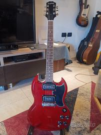 Vendo per inutilizzo Epiphone SG edizione limitata Tony Iommi. Acquistata nuova in negozio 12/2022, suonata forse 5 ore, perfetta, pari al nuovo. Adesivo monkey ancora nella busta. Inclusa la custodia rigida Epiphone. Vendo per inutilizzo e sfoltimento parco chitarre. La chitarra suona benissimo ma nonostante mi innamorai del suono mentre la provavo nel negozio, non mi sono mai abituato alla postura della chitarra suonando in piedi ed al manico tipico sg, preferisco più stretto e cicciotto (alla Jared James Nichols gold glory). Preferisco prova e ritiro presso mio domicilio, ma posso provare a consegnarla in concomitanza di spostamenti di lavoro lungo A1 (Como Firenze) e A14 (Como Riccione) o spedire a rischio e spesa dell' acquirente. spedizione 20€