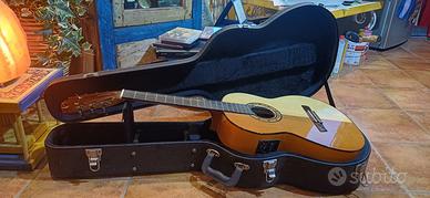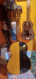 Top in abete tedesco e cedro canadese. Corpo in palissandro indiano e cipresso spagnolo. Tastiera in ebano.