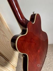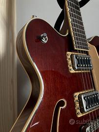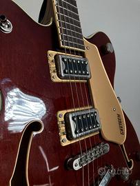 Vendo per passaggio a modello differente questa splendida chitarra acquistata da Thomann Music. La finitura Aged Walnut di questa chitarra attualmente è fuori produzione. Utilizzata per sole registrazioni in studio e con la massima cura. Aggiungo custodia rigida in omaggio, praticamente nuova anch’essa. La chitarra si può visionare e provare senza problemi. Solo scambio a mano in zona Cittadella, Castelfranco, San Martino di Lupari e comuni limitrofi. Caratteristiche: - Body: Semi-Hollow con double cutaway - Corpo: acero - Top bombato: acero laminato - Manico: acero - Tastiera: alloro - Inlays: Neo-Classic Thumbnail madreperlati - Profilo del manico: U sottile - Raggio della tastiera: 305 mm (12") - Lunghezza della scala: 625 mm (24,6") - Larghezza del capotasto: 42,86 mm (1,6875") - Capotasto: GraphTech NuBone - 22 tasti medium jumbo - Pick-up: 2 humbucker Black Top Broad'Tron (ponte e manico) - Controllo master per il volume con circuito Treble Bleed - Controllo master per il tono - 2 controlli per il volume dei pick-up - Selettore a 3 vie - Battipenna in plexiglas nero con logo Gretsch ed Electromatic argentato - Ponte Adjusto-Matic - Meccaniche: chiuse Die-Cast - Hardware: nichel - Colore: Aged Walnut - Made in Cina