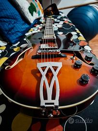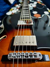 IBANEZ Artcore AG75 BS Brown Sunburst Condizioni perfette (tasti, elettronica, body) pari al nuovo. La chitarra dopo essere stata acquistata e portata dal liutaio per il setup, è stata usata rarissime volte in quanto ho abbandonato la musica a causa del poco tempo a disposizione. Caratteristiche principali Body: Acero (top, fondo e fasce) mid-sized, full-hollow body Manico: Artcore, Set-in , Mogano Tastiera: Palissandro, 22 tasti medi Scala: 628mm Capotasto: 43mm Intarsi: Rettangolari Pickup manico: ACH1 humbucker Classic Elite (H) (Passive/Ceramic) Pickup ponte: ACH2 humbucker Classic Elite (H) (Passive/Ceramic) Controlli: 2x Volume, 2xTono, Selettore a 3 vie Ponte: ART1 with VT60 tailpiece Hardware: Cromato Consegna a mano tra Roma e Rieti