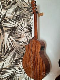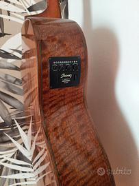 Presenta un corpo a forma di grand concert con un top in abete laminato, fasce in movingui e un fondo in due pezzi.