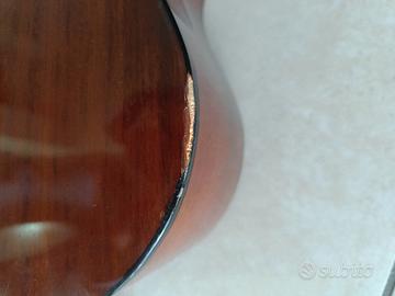 vendo chitarra in legno lunga 100 cm larga 35 cm da accordare, presenta alcuni graffi sul bordo