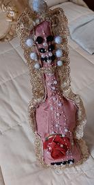 Vendo chitarra fatta a mano in stoffa, ottima come decorazione o regalo per appassionati di musica. E' realizzata con stoffa, fiori artificiali, perline.