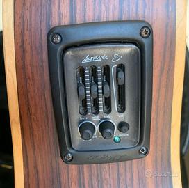 Tavola in abete massello, fasce e fondo in palissandro massello, tastiera e ponte in ebano. Preamplificatore LR Baggs Element. Satin finish. Made in Canada. Con custodia rigida e accessori originali. Altre specifiche reperibili sul sito del produttore.