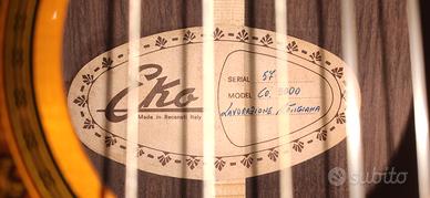 Chitarra classica Eko Co3000. Lavorazione artigianale in legni pregiati,serie numerata,mai adoperata. Con custodia rigida. Fine anni 70.Produzione artigianale, come nuova