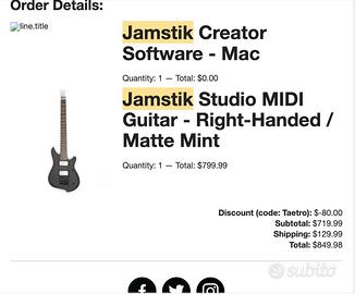 Vendo bellissima chitarra Midi Jamstik Studio colore Matte Maint, usata solo in studio, completa di ogni suo accessorio/cavo. Vendo per passaggio a Push 3. Prezzo intrattabile visto che ho pagato anche la dogana per averla direttamente dalla casa madre in Cina, oltre le spese della fattura online che allego. Disponibile a spedire