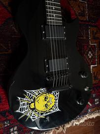 chitarra elettrica custom kirk hammet adesivo e tasti ragni incollati su tastiera … perfetta