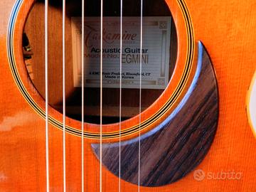 chitarra acustica modello parlor, Takamine G-series EGmini. Restauro e lucidatura a gommalacca. Battipenna in palissandro fatto a mano. Capotasto in osso. Tasti e tastiera in ottime condizioni.