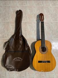 Chitarra classica con custodia e plettro in buone condizioni. L’unico appunto è che ha una corda da sistemare. Ritiro anche a mano zona Zoppola