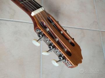 Chitarra classica spagnola marca Privada, anno di produzione 1996. Dimensioni 3/4 ovvero lunghezza 91 cm. Da cambiare una corda, strumento usato con piccoli segni (vedi foto)