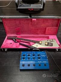 Chitarra Roland G 707 con synth Roland GR 300; midi controller Ibanez MC1. Piccola scheggiatura sulla paletta della chitarra (vedi foto). Qualche graffio sul retro della chitarra (vedi foto). Custodia chitarra originale. Fondo del GR 300 riverniciato. Tutto perfettamente funzionante.