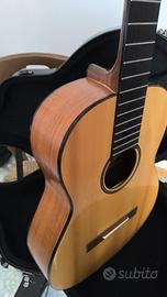 Tavola abete rosso (val di Fiemme), fasce e fondo Voan Boana (palisandro del Madagascar), manico Mogano, ponte Louro Preto (un noce dal Brasile) e tastiera in Ebano.