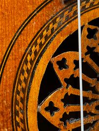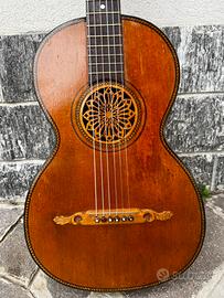 Chitarra romantica tedesca, corde low tension. Piccole riparazioni. Sono presenti riparazioni precedenti.