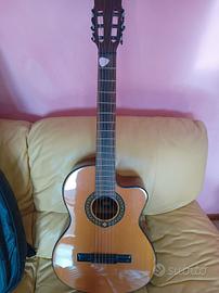 vendo per fine attività chitarra classica elettrificata Lag Occitania OC66CE. Spalla mancante top in abete rosso fasce e fondo in mogano tastiera in palissandro pickup ed equalizzatore Shadow DirectLag con la custodia semi rigida professionale Proel. La chitarra ha sempre suonato in casa ed è perfetta. Le rifiniture e il suono sono da chitarra di fascia di prezzo moooolto superiore. Proposta con custodia. Stato dello strumento come nuovo!! Solo ritiro a casa mia non spedisco