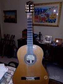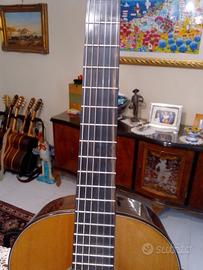 Vendo chitarra classica Salvador Cortez tutta in legno massello piano armonico in cedro e fondo e fasce palissandro indiano redatta di fodero rigido non originale. Da segnalare solo un piccolo graffio sulla fascia dx che non preclude nulla .