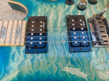 Manico: Acero - Scala: 255". Tastiera: Acero - 24 tasti X-Jumbo. Intarsi: "Vector". Colore: Ocean Blue Burst - Finitura: Lucida. Pickups: 2x Humbucker Schecter Diamond Plus. Ponte: Schecter Vintage Tremolo. Controlli: 1x Tono + 2x Volume + Potenziometro Push/Pull + Selettore a 3 posizioni. Finiture hardware: canna di fucile cromato.
