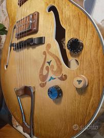 Inserti in madre perla, ARCHTOP, suono caldo e avvolgente, con il giusto pedale (io uso il TS9 dell'Ibanez) tira fuori anche un suono da assolone mica da scherzo!