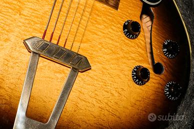 Chitarra semiacustica Gibson ES 175 - anno 2007 La chitarra che ha fatto la storia del Jazz dagli anni '50 in poi, inutile presentarla. Questo pezzo del 2007 è in ottime condizioni, tasti pari al nuovo, perfettamente settata. Stranamente ha diversi "ding" in corrispondenza del selettore a tre posizione, per il resto nemmeno un graffio. Custodia originale, settata professionalmente con corde nuove, Thomastik JS 012-50. Possibilità di spedizione, preferibile il ritiro a mano.