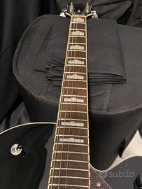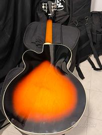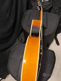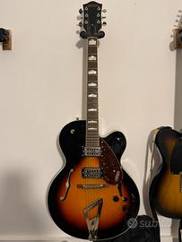 Come nuova. Forma del corpo: Hollow Corpo: acero Manico: nato Tastiera: alloro Inlays: Neo-Classic Thumbnail madreperlati Profilo del manico: Soft "C" Manico con finitura lucida Raggio della tastiera: 305 mm (12") Capotasto: osso Larghezza del capotasto: 42,9 mm 22 tasti: Medium Jumbo Pick-up: 2 humbucker Broad'Tron BT-3S Controlli: Volume 1, Volume 2, Master Tone e Master Volume con funzione push/pull per coil split Selettore a 3 vie Battipenna effetto tartaruga a 3 strati con logo Gretsch color oro Ponte Adjusto-Matic Meccaniche: DieCast chiuse in nichel Corde installate: acciaio nichelato (.010 - .046) Colore: Aged Brooklin Burst lucido