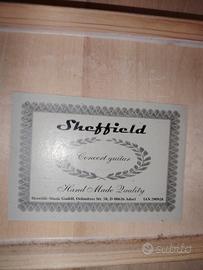 Vendo chitarra classica nera Sheffield in buone condizione con ottimo suono, ideale per chi vuole iniziare ad approcciarsi alla musica + set di 6 corde nuove da cambiare + metronomo digitale