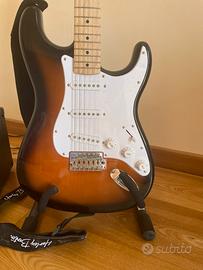 chitarra squier stratocaster + amplificatore harley benton enttrambi in perfette condizione usate pochissime volte