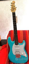 Vendo come da titolo chitarra elettrica Sterling by Music Man Sterling Cutlass CT20 HSS Electric Blue come nuova, corpo in pioppo, manico in Hard Maple, tastiera in amaranto (purple heart) a 22 tasti, pickup ceramici in configurazione HSS con selettore a 5 vie, ponte Vintage Fulcrum Tremolo e le meccaniche Diecast 4+2 allineate, corde 009 - 042 al prezzo di euro 145 con consegna a mano solo su Taranto.