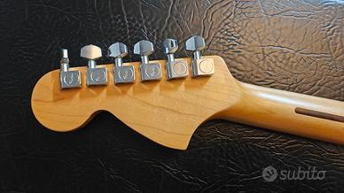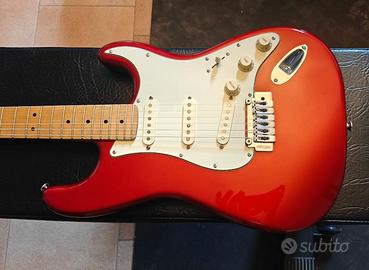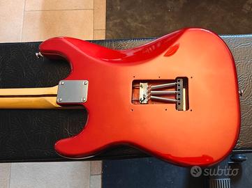 Vendo chitarra Stratocaster assemblata con componenti di ottimo livello, colore candy apple red, manico palettone con tastiera in acero 22 tasti e capotasto in ottone. Body e manico sono di provenienza All Parts, il ponte è il celebre Wilkinson a 2 pivot, meccaniche Fender standard, elettronica cablata con le stesse componenti utilizzate sui modelli Fender. I pick up manico e ponte sono degli artigianali realizzati da MP-Pickups mentre al centrale trova posto un single coil Jackson di fabbricazione americana. Corde nuove scalatura 0.10. Le foto sono reali, comprate quello che vedete.