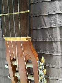 Vendo chitarra classica Sutton & York in condizioni da restauro: mancano due meccaniche per accordare le corde, quindi non è suonabile al momento.