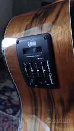 Vendo chitarra elettroacustica Tanglewood modello TVC X PW, della serie Evolution Exotic. È una chitarra in ottime condizioni, suonata pochissimo e tenuta sempre in casa. È uno strumento versatile e dal suono bilanciato, adatto sia per chi inizia che per musicisti più esperti. Caratteristiche principali: Corpo: Grand Auditorium con cutaway veneziano, finitura Natural Gloss. È molto comoda da suonare sia da seduti che in piedi. Materiali: Costruita interamente in Pacific Walnut, un legno esotico che regala un suono brillante sugli alti e caldo e corposo sui bassi . Manico: In mogano, con tastiera in palissandro, molto scorrevole e confortevole Elettronica: Monta il sistema B-Band M450T, con equalizzatore a 4 bande (Bass, Middle, Treble, Presence) e sintonizzatore cromatico digitale integrato. Nessuna abrasione, graffio o segno di usura. Funziona perfettamente. La vendo per inutilizzo. Solo ritiro in zona.
