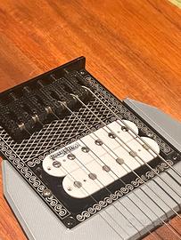 Portata da liutaio per settarla, al momento è dettata per corde 010 accordata un tono sotto all’accordatura standard (RE). Si può Comunque suonare anche in accordatura standard senza problemi.