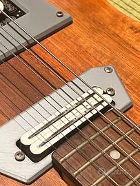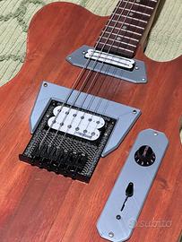 Monta due pickup Wilkinson, un minihumbucker al manico e un humbucker al ponte.