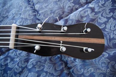 Terzina diapason 560 in acero occhiolinato e abete Fiemme. Manico in acero e tastiera in palissadro. Piroli in ebano Gabon. Vernice gommalacca decerata.