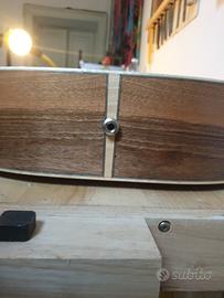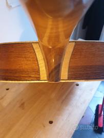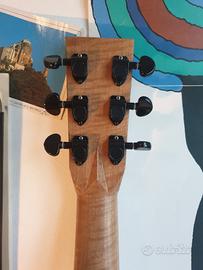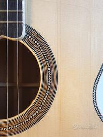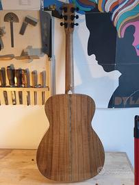 Chitarra acustica di liuteria Modello Martin 00, tavola in abete val di fiemme, fondo, fasce e manico in noce marezzato, tastiera e ponticello in ebano, attacco cassa manico al 14° tasto, larghezza capotasto 45 mm sistema amplificazione con piezo.