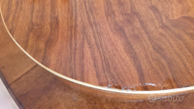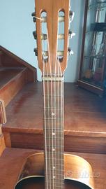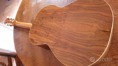 Chitarra acustica anni ’70 in buone condizioni. Presenta lieve difetto in fondo alla cassa come da foto. Suono ottimo, ideale per principianti. Vendo per inutilizzo a € 40. Regalo custodia. Eventuale spedizione a carico dell’acquirente o consegna a mano zona Torino e dintorni.