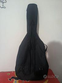 chitarra Yamaha CG102 in ottime condizioni con corde mediamente consumate, con poggiapiedi in buone condizioni, custodia in pelle originale e un altra custodia in tessuto adatta al trasporto. è presente anche uno stand della Tiger e l' accordatore.