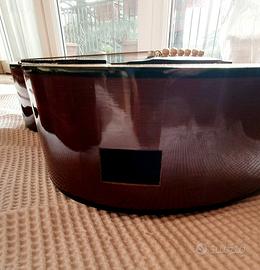 Chitarre classiche usate in legno massello in buone condizioni. una presenta un foro sulla fascia per inserimento elettrificazione. prezzo per tutte e 3 le chitarre.
