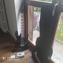 Chitarra elettrica Ibanez N427 con accordatore elettronico Korg CA40 più un basso De Salvo mod. DSAG1CEOBK,entrambe con custodie.