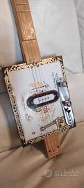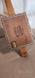 Favolosa Cigar box prototipo artigianale, unico esemplare. 4 corde, scala 648mm, scatola originale Arturo Fuente, pickup specifico per cigar box centrale e pickup piezoelettrico interno selezionabili con leva a 3 posizioni tipo Telecaster, potenziometri tipo CTS con albero in rame, corde nuove Ernie Ball, bellissima e unica. Vendo euro 90.