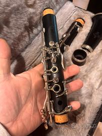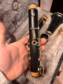 Clarinetto Buffet Crampon in ebano modello E10L doppia leva del mib, sugheri nuovi, cuscinetti nuovi Pisoni Hightech. Funziona benissimo, segni del tempo sulla finitura delle chiavi come da foto. Prezzo basso per questo motivo non trattabile