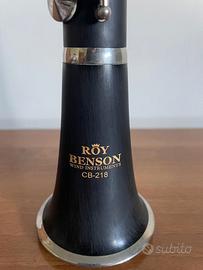 Clarinetto in Sib - marca: Roy Benson CB-218 con custodia morbida. Sistema Boehm, corpo in ebatite. Bocchino, ancia e copribocchino. Astuccio rettangolare, che diventa zainetto. Vendo per inutilizzo.
