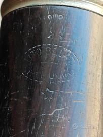 Questo clarinetto, in Si bem, in legno d’ebano, con bocchino in cristallo, senza custodia, è un raro strumento musicale, vintage da collezione – se pur non funzionante, privo di tamponi – essendo stato prodotto a Perugia dallo Stabilimento Musicale TITO BELATI, dove fu attivo già dalla seconda metà del XIX secolo.