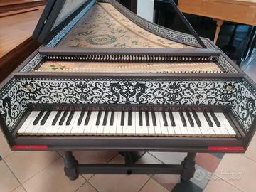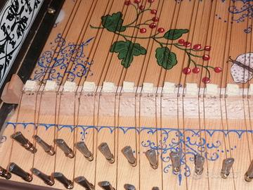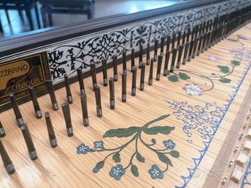 -Tastiera in osso e ebano, tavola armonica in abete e cassa in tiglio, saltarelli in plastica (efficienti e di buona qualità) con viti di regolazione.