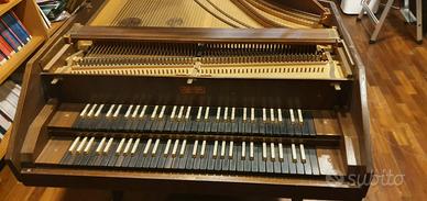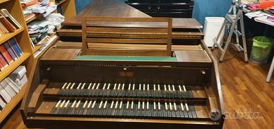 Due manuali: Primo manuale 8 e 16 piedi; Secondo manuale 8 e 4 piedi; unione dei manuali; effetto liuto e smorzi su 8 e 16 piedi.
