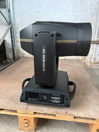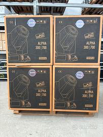 Vendo 8 clay paky alpha beam 700 in ottime condizioni completi di tutti gli accessori e cartoni originali. CARATTERISTICHE TECNICHE • Lampada a scarica 700W • Gruppo ottico ad elevatissima resa luminosa (90.000 lux a 10m) • Movimenti PAN e TILT straordinariamente ampi, veloci e lineari. • Fascio naturale di 7°, possibilità di ottenere fasci di apertura inferiore • Sistema colori CMY + ruota colori, inclusi filtri di conversione CTO e CTB • 15 gobo + 1 prisma, per variare la grafica e l’apertura del fascio.