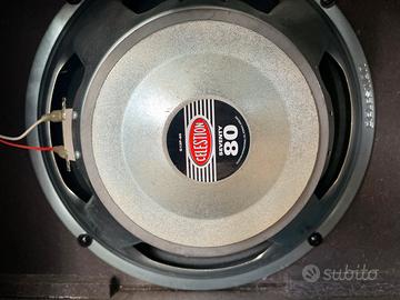 Amplificatore 30 watt per chitarra elettrica, speaker 12” Celestion Seventy 80. Monta 3x valvole 12AX7 nella sezione preamplificatore e 2x valvole 6L6GC nel finale.