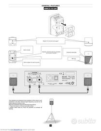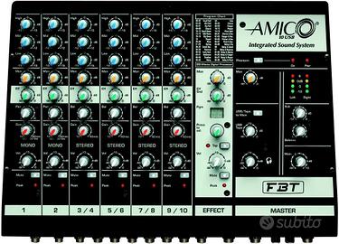 FBT Amico 10 USB Impianto audio tri-amplificato 800W All in One, con Mixer INTEGRATO 14 canali ed alloggiamento interno per i Satelliti. Tutto di alto livello, IMPIANTO molto professionale, suono HiFi.