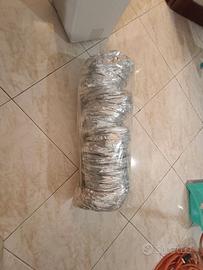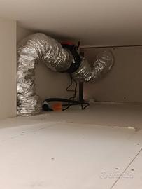 Condotto in alluminio rivestito di materiale isolante per attutire il rumore ideale per impianti di ventilazione con un diametro di 102mm. Ho utilizzato una parte (vedi foto) e dunque restano circa 3 metri. Le condotte fonoassorbenti, servono a ridurre la rumorosità e le vibrazioni dell'impianto di areazione. Costruite in alluminio molto resistenti e rivestite con materiale fonoassorbente. Isolamento: materassino termoisolante in lana di vetro spessore 25 mm. densità 18 kg/mc. Protezione anticondensa inclusa Utilizzo: Condizionamento - Riscaldamento - Ventilazione per sale prove.
