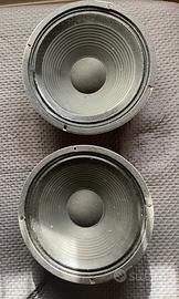 Vendo due coni HH Made in UK anni ‘80. ATTENZIONE: questi non sono i coni Laney fatti da HH, ma due veri e propri HH, brand che si ispirava ai Celestion. Queste sono delle valide e molto più economiche alternative ai Rola Celestion G12M-70 anni ‘70. 80W, 16ohm ciascuno. Hanno un timbro equilibrato senza alte perforanti, belle medie (non sono scooped) e basse ferme. Uno dei due coni è stato riparato (e funziona perfettamente), ma l’altro è perfetto. Giusto un po’ impolverati. Il prezzo riflette le condizioni. Ottimo upgrade con poca spesa per combo o casse 1x12 o 2x12